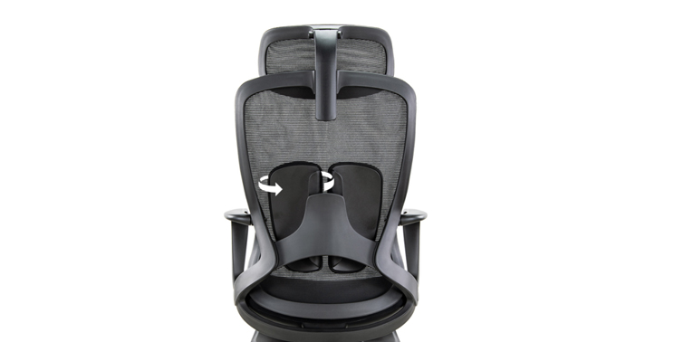 Dual-sided floating wing lumbar support, stabilizing both sides of the lumbar muscles; Extra-large sponge material provides all-around enveloping support; Segmented lumbar cushion ergonomically conforms to the back, offering over 35% surface area support.
