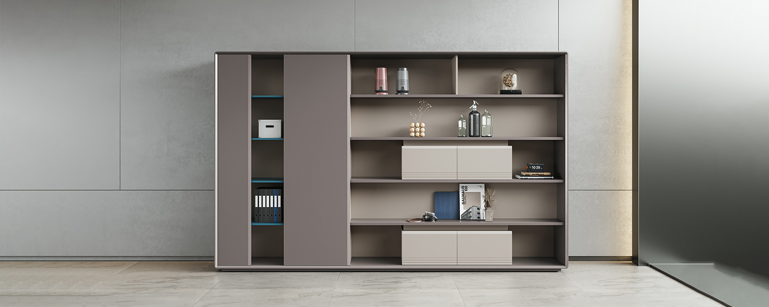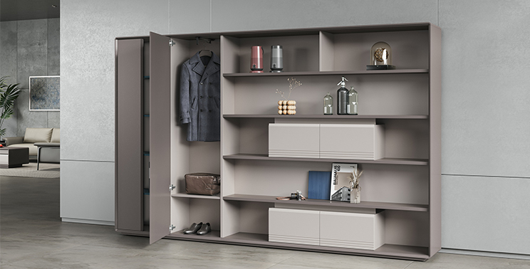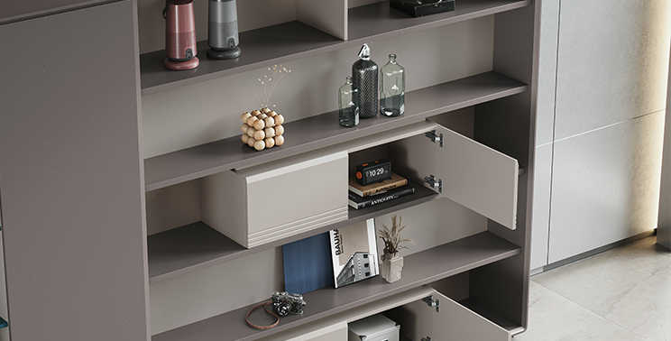 The overall design features staggered asymmetrical elements, effectively meeting storage needs while highlighting the product's design aesthetics and layered visual appeal.