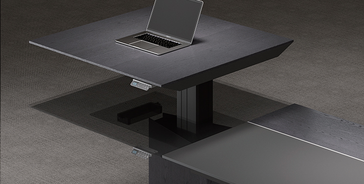 Sectional height-adjustable work surface with precisely controllable elevation range, accommodating users' transition between seated and standing work postures. Effectively alleviates fatigue from prolonged static positioning while enhancing workplace comfort.