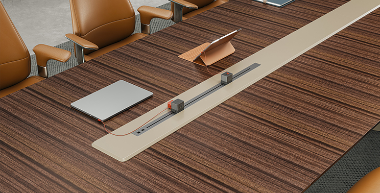 Desktop power track socket system, each track section comes standard with two 5-hole power outlets, one HDMI port, and one network interface.