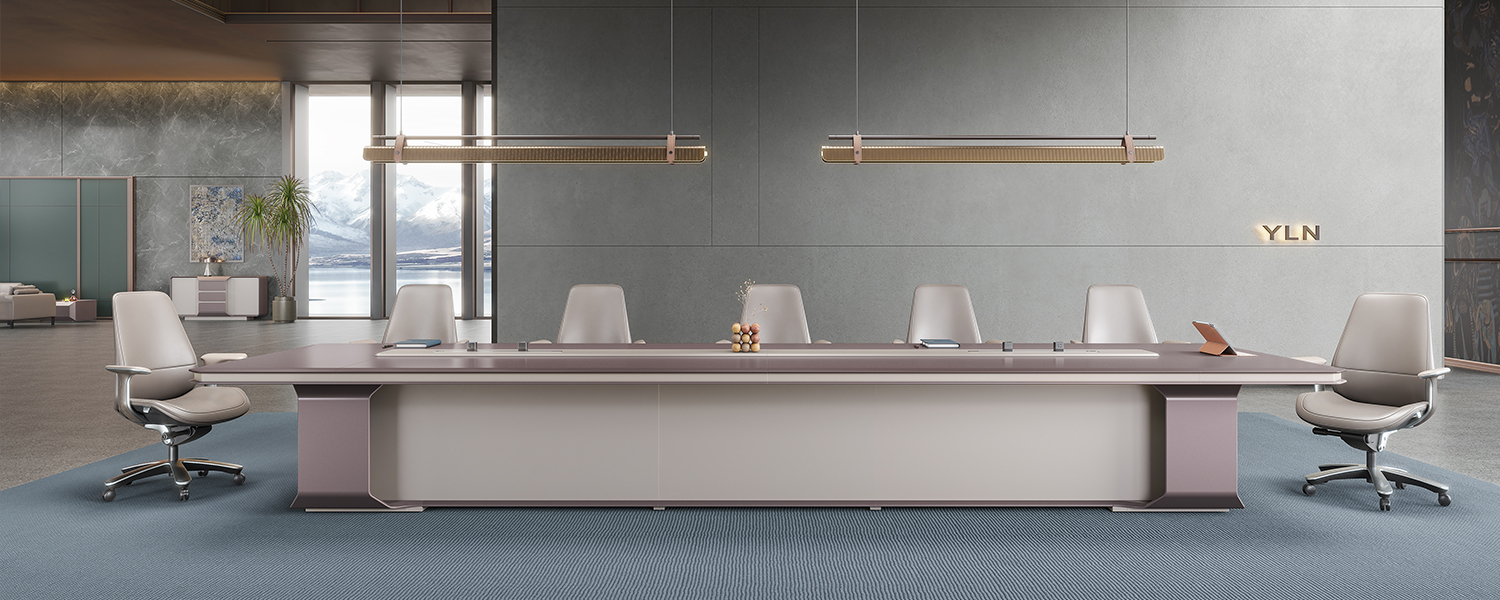 Elegant and noble conference table series, in any form under the display of its flawless, invisible over the line,seamless splicing can be sliding rail power supply,the use of bilateral power supply, so that the meeting is more flexible and convenient, improve efficiency.