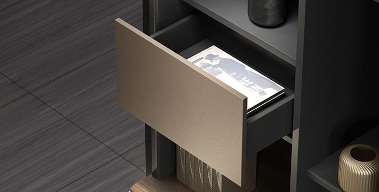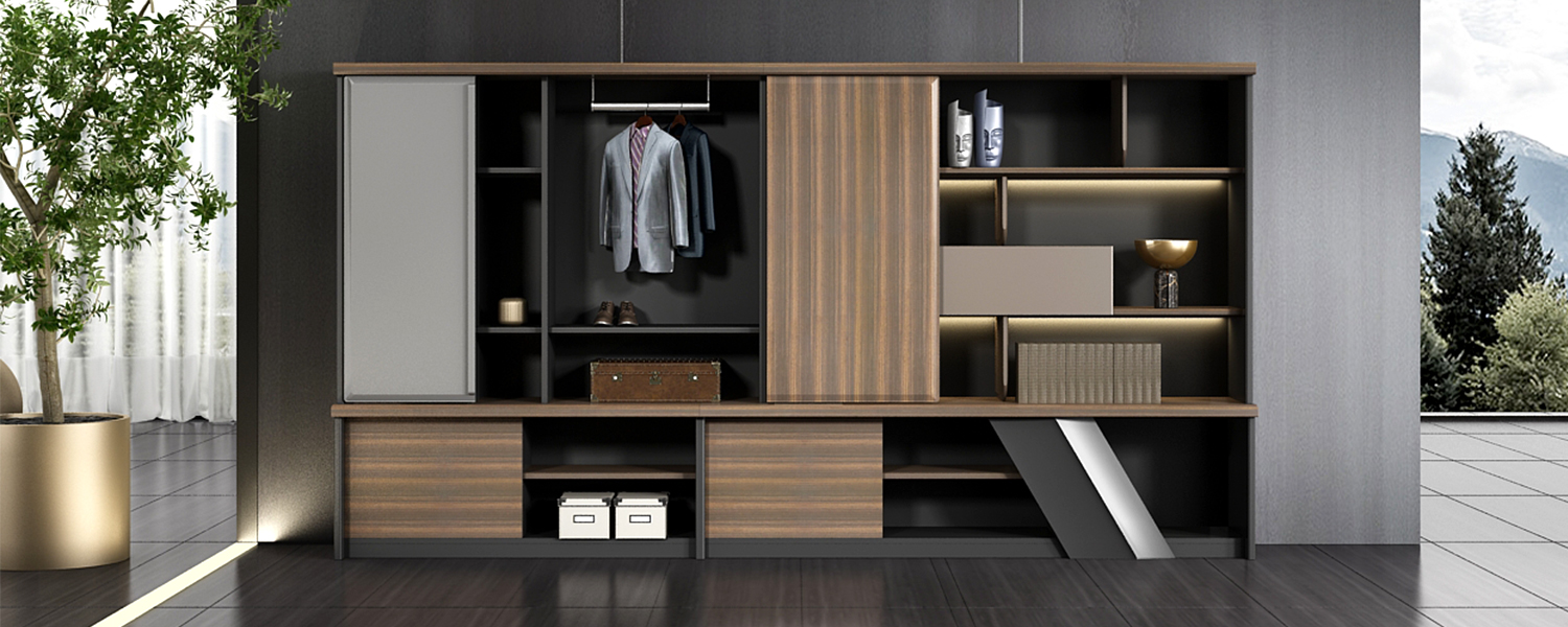 Featuring drawers, large sliding doors, and small sliding doors, it offers diverse storage solutions for organized categorization and storage space.