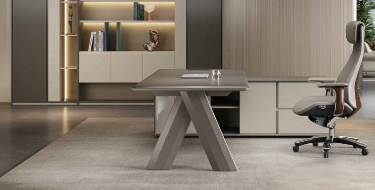 Utilizing minimalist geometric forms: The A-shaped legs serve as fulcrums, supporting the entire tabletop to create a suspended work experience. The robust leg design ensures stable support while conveying a sense of strength.