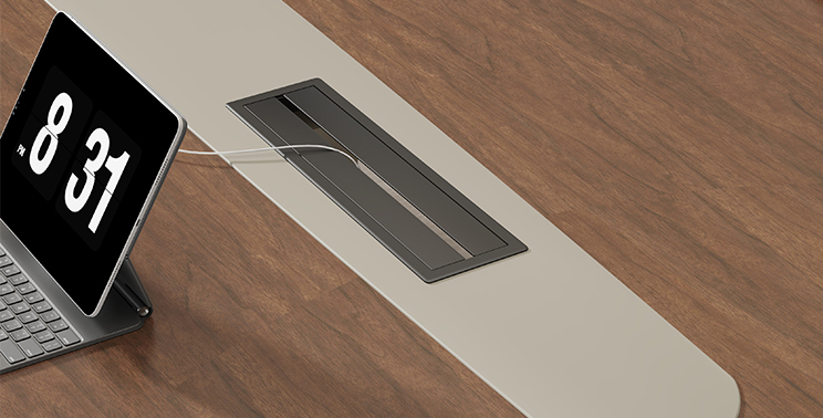 Dual-flip wire boxes for an enhanced user experience, fostering a more efficient office environment.