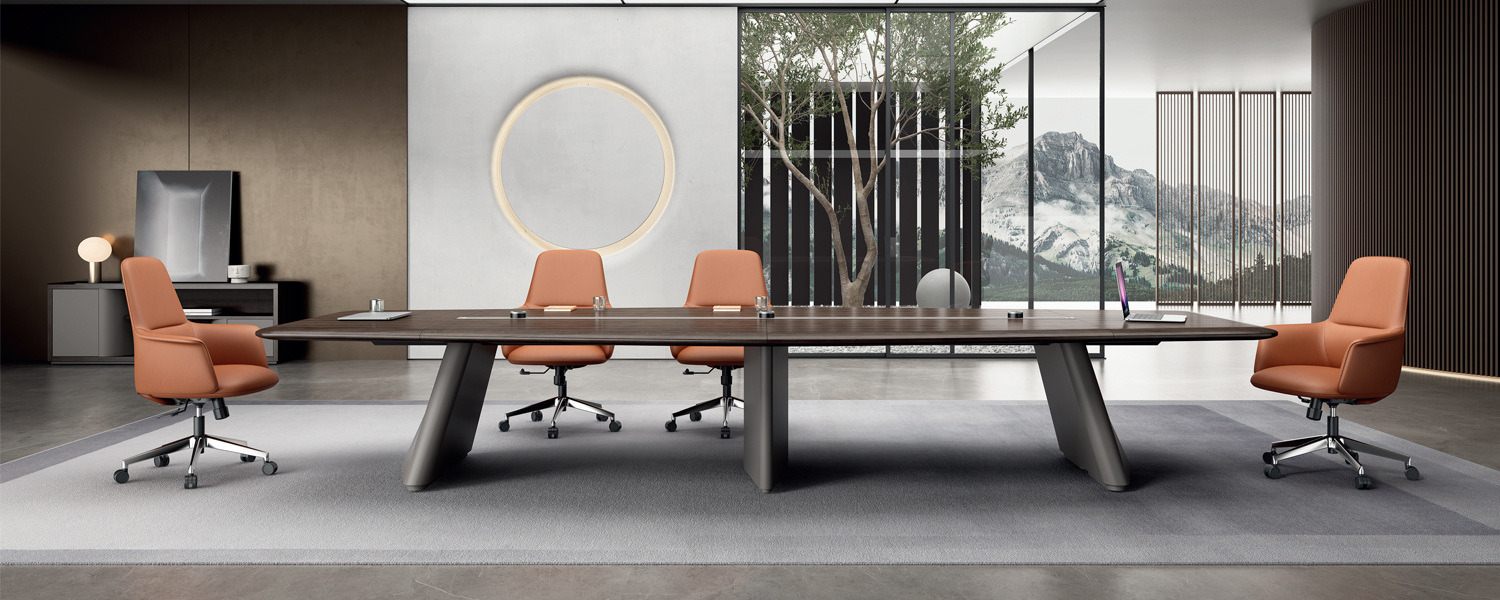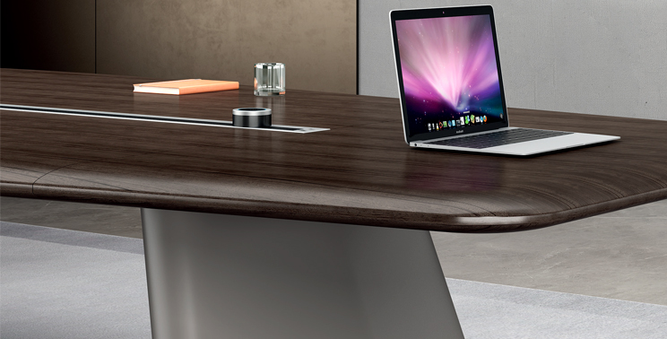 The perfect fusion of curves and straight lines creates a uniquely tailored foot profile, while the tapered tabletop design brings people closer together.Choose between power track and side-sliding cable box configurations to DIY your ideal meeting space.