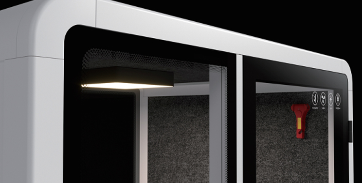Our booth has an effective area of 6o% covered Polyester Fiber sound absorbing material.