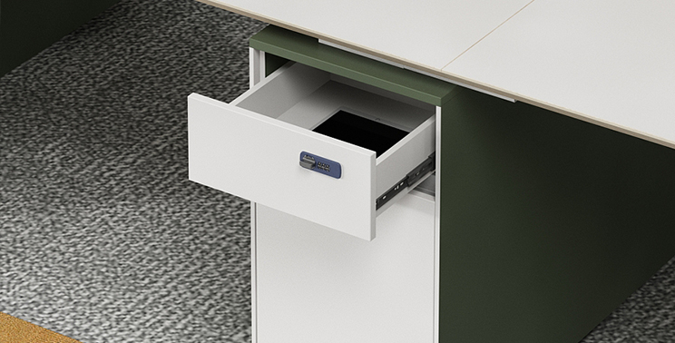 One draw at a time, and reserved a host seat. The cabinet integrates file storage and circuit storage,with preset wiring space inside, and reserved socket holes and Taij wire boxes on the outside,which can be installed with sockets and wiring to meet the use of various electronic devices.