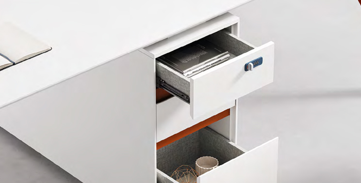 Desktop power outlet decorative box and drawer with three-wheel combination lock feature premium domestic hardware fittings.