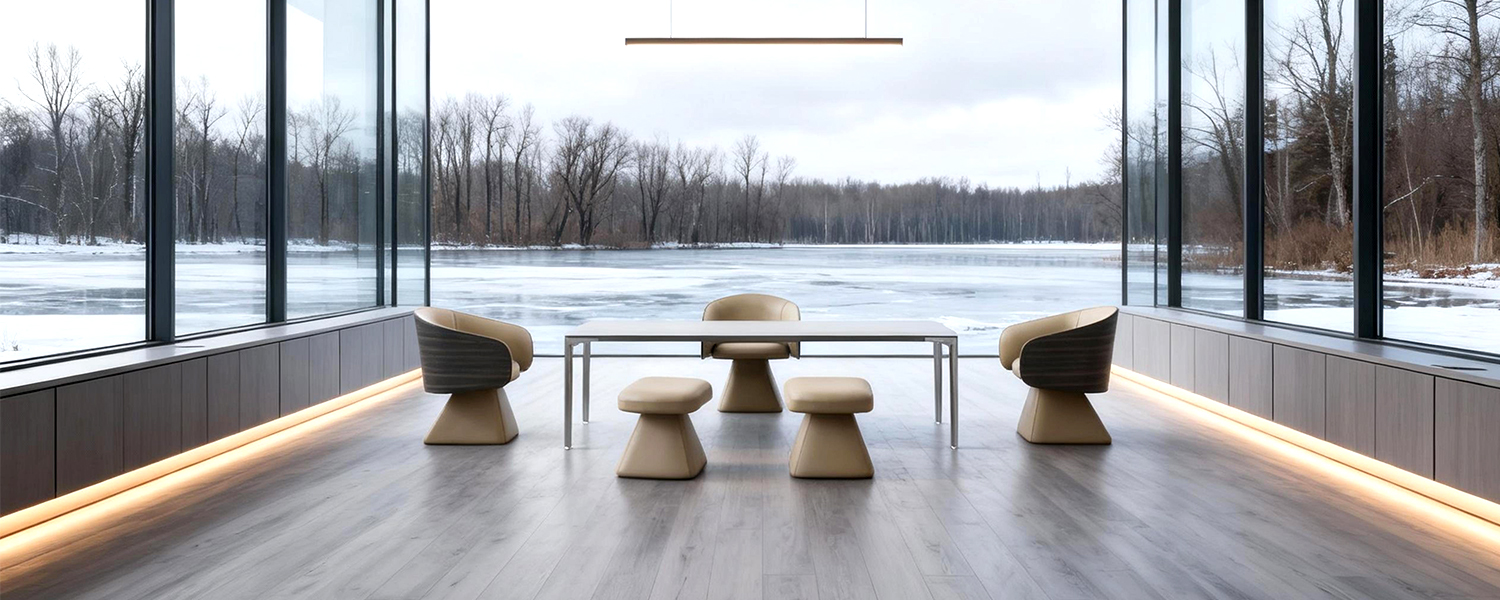 Frame: One-piece molded bentwood panel with solid pine base frame; Surface: High-quality water-based leather with exceptional hydrolysis resistance.