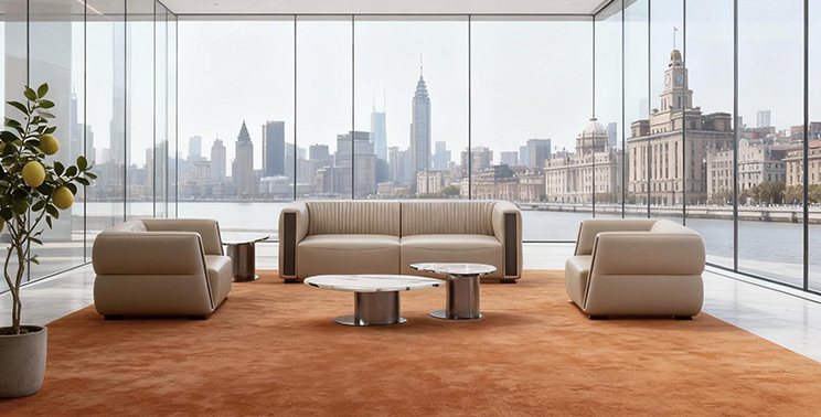 Amos sofa, with its unique design. The armrests feature a waist-cinching design, while the front side is adorned with wooden panels. The backrest interior is finished with a pleated effect. The product boasts wide armrests and a backrest, along with a thick, soft, and resilient seat cushion. Its simple yet elegant exterior is complemented by exquisite details. The overall design of the Amos sofa exudes grace and sophistication, perfectly suited for high-end guest areas. Through Amos, we believe you and your guests will enjoy the best communication experience.