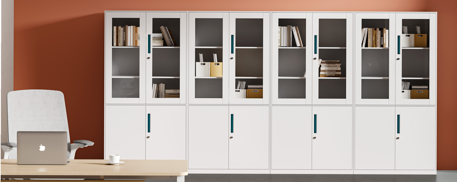 Glass-door cabinet, which combine transparent glass doors with a classic opening design, offers a clear display of the items inside,facilitating easy selection and management. With a sturdy structure and a stylish appearance,It is suitable for storing books, showcasing awards, or serving as a tea station. These cabinets are storage furnishings that blend practicality and aesthetics in the office.